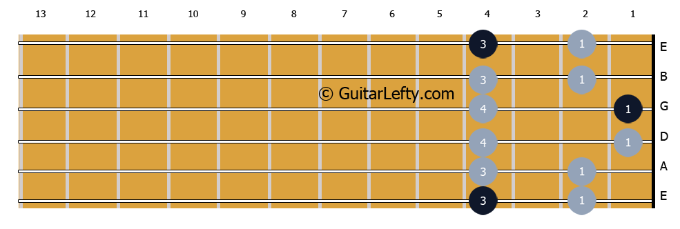 A pattern is a set of notes that are played one after the other. There are five different patterns that can be played in A Flat Pentatonic Minor, each of which are inter-connected across the fretboard.