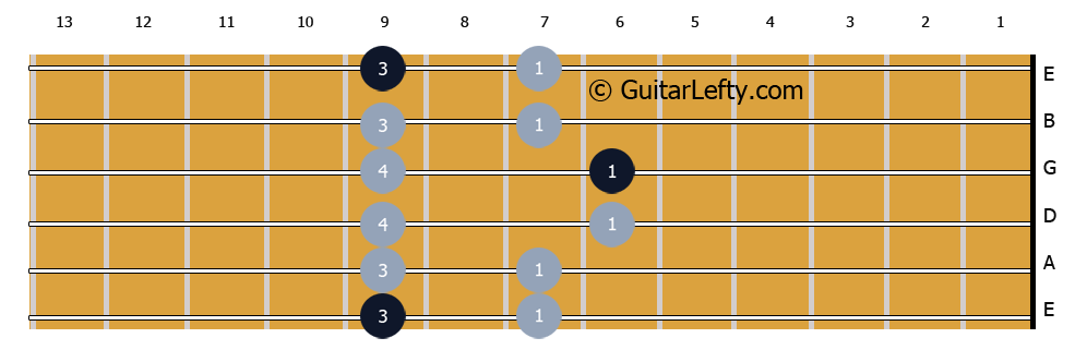 A pattern is a set of notes that are played one after the other. There are five different patterns that can be played in C Sharp Pentatonic Minor, each of which are inter-connected across the fretboard.